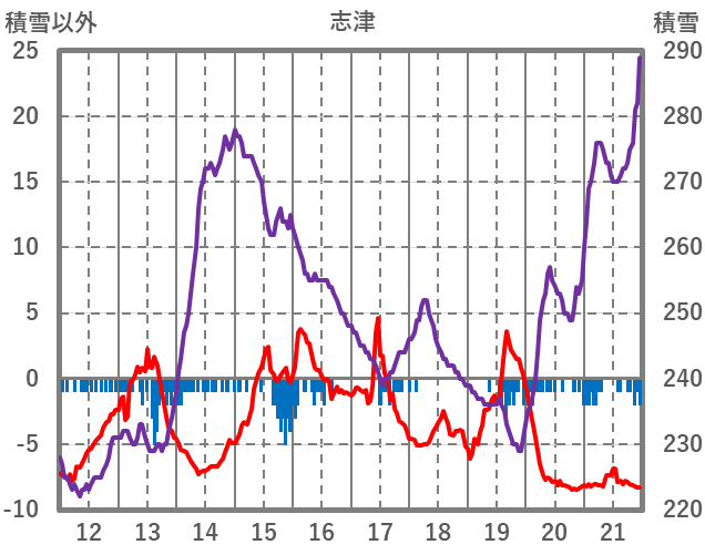 | 日 | 時 | 気温 | 降水 | 風向/風速 | 日照 | 積雪 | 降雪 |