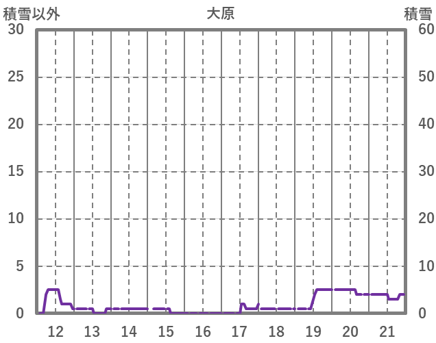 | 日 | 時 | 気温 | 降水 | 風向/風速 | 日照 | 積雪 | 降雪 |