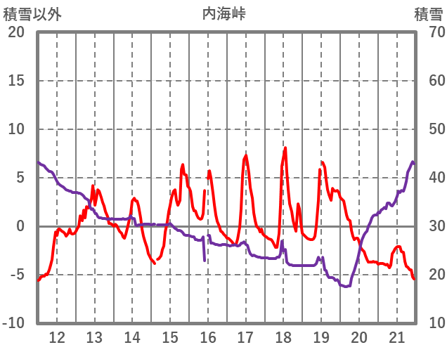 | 日 | 時 | 気温 | 降水 | 風向/風速 | 日照 | 積雪 | 降雪 |