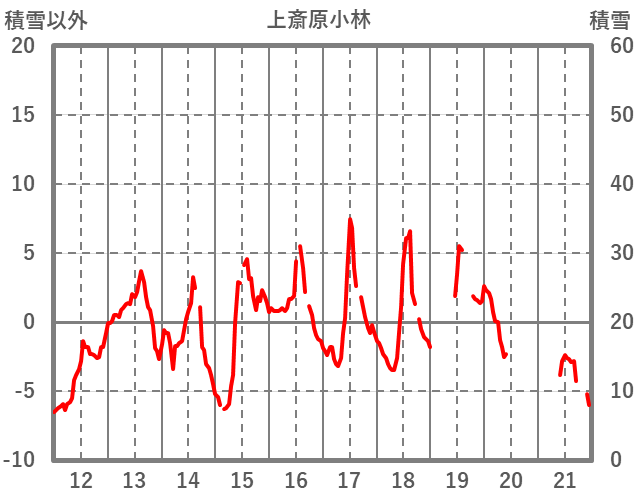 | 日 | 時 | 気温 | 降水 | 風向/風速 | 日照 | 積雪 | 降雪 |