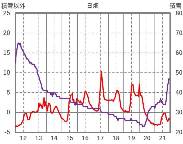 | 日 | 時 | 気温 | 降水 | 風向/風速 | 日照 | 積雪 | 降雪 |
