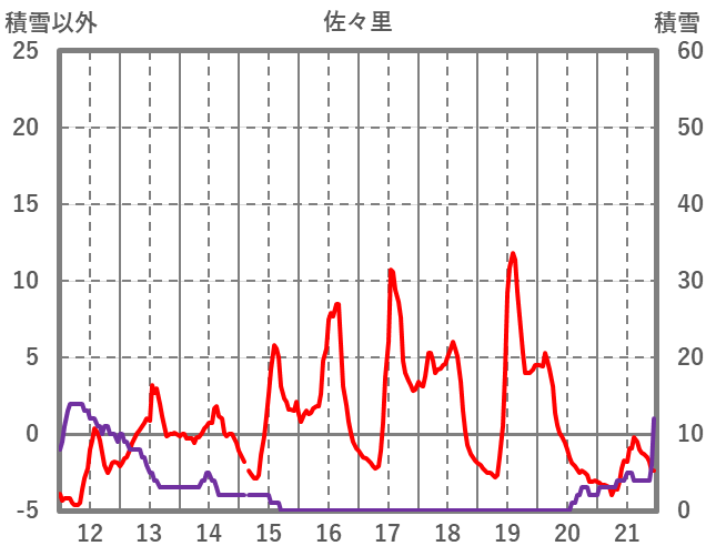 | 日 | 時 | 気温 | 降水 | 風向/風速 | 日照 | 積雪 | 降雪 |