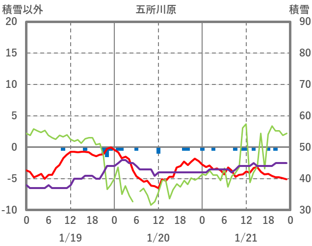 | 日 | 時 | 気温 | 降水 | 風向/風速 | 日照 | 積雪 | 降雪 |