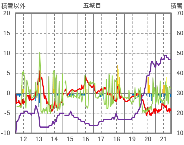 | 日 | 時 | 気温 | 降水 | 風向/風速 | 日照 | 積雪 | 降雪 |