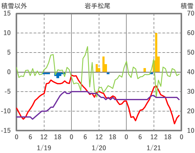 | 日 | 時 | 気温 | 降水 | 風向/風速 | 日照 | 積雪 | 降雪 |