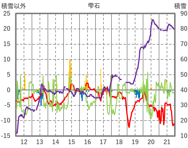 | 日 | 時 | 気温 | 降水 | 風向/風速 | 日照 | 積雪 | 降雪 |