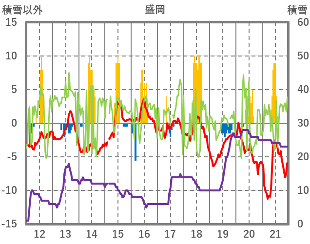 | 日 | 時 | 気温 | 降水 | 風向/風速 | 日照 | 積雪 | 降雪 |