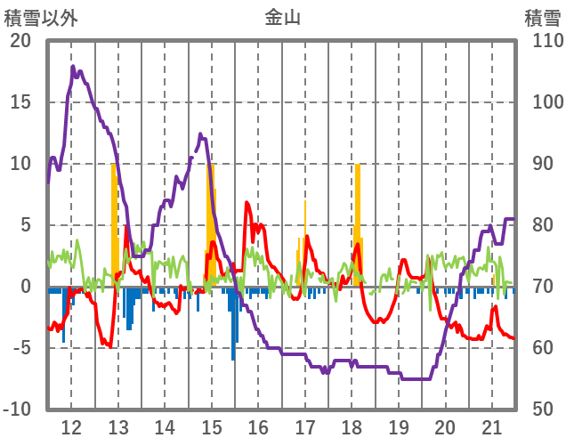 | 日 | 時 | 気温 | 降水 | 風向/風速 | 日照 | 積雪 | 降雪 |