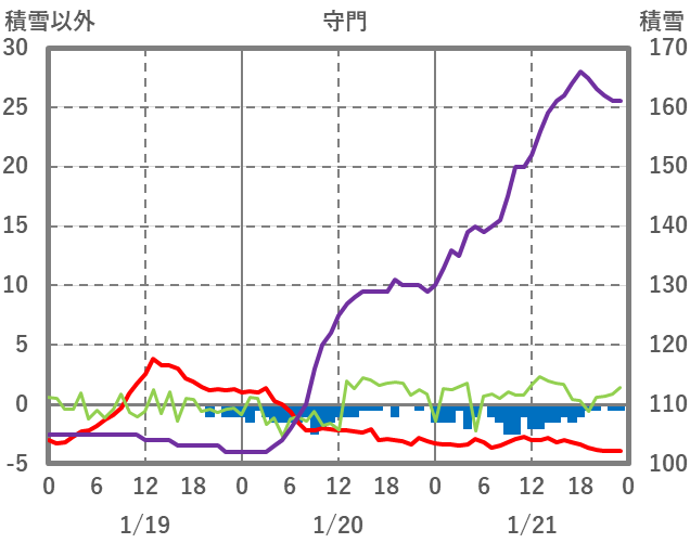 | 日 | 時 | 気温 | 降水 | 風向/風速 | 日照 | 積雪 | 降雪 |