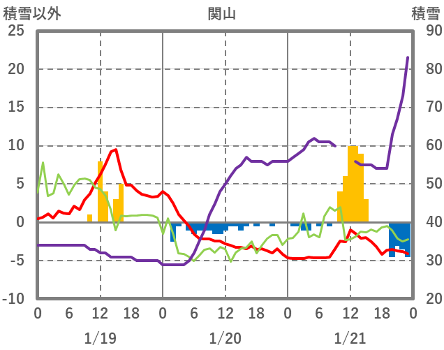 | 日 | 時 | 気温 | 降水 | 風向/風速 | 日照 | 積雪 | 降雪 |