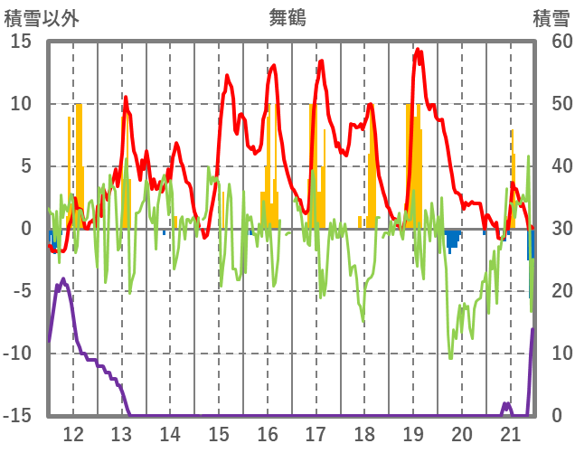 | 日 | 時 | 気温 | 降水 | 風向/風速 | 日照 | 積雪 | 降雪 |