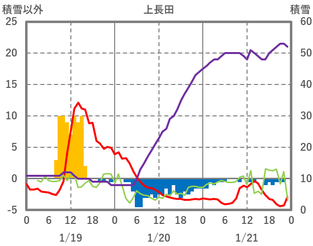 | 日 | 時 | 気温 | 降水 | 風向/風速 | 日照 | 積雪 | 降雪 |