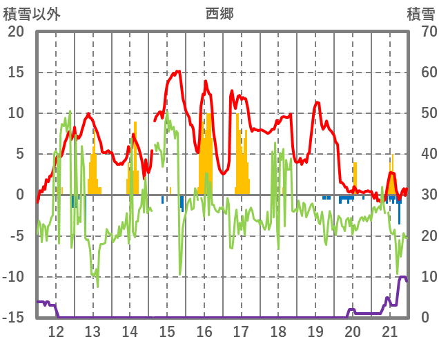 | 日 | 時 | 気温 | 降水 | 風向/風速 | 日照 | 積雪 | 降雪 |