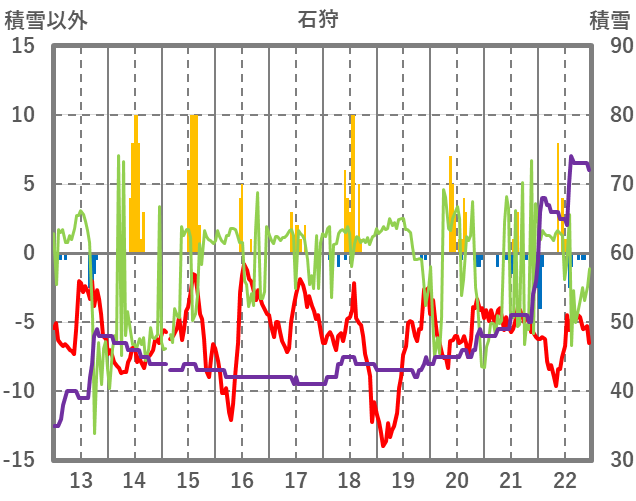 | 日 | 時 | 気温 | 降水 | 風向/風速 | 日照 | 積雪 | 降雪 |