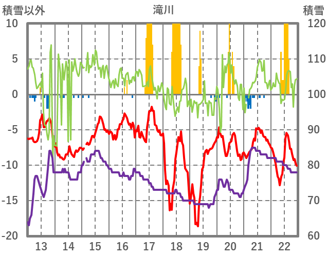 | 日 | 時 | 気温 | 降水 | 風向/風速 | 日照 | 積雪 | 降雪 |