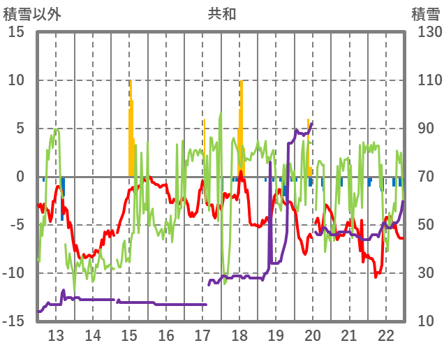 | 日 | 時 | 気温 | 降水 | 風向/風速 | 日照 | 積雪 | 降雪 |