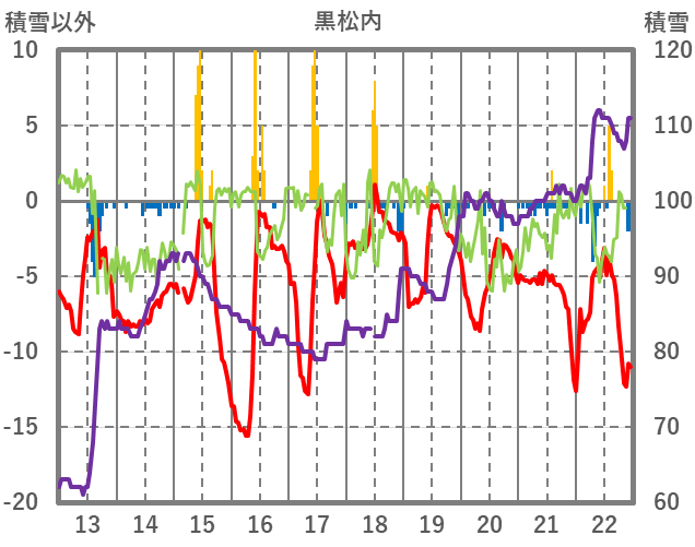 | 日 | 時 | 気温 | 降水 | 風向/風速 | 日照 | 積雪 | 降雪 |