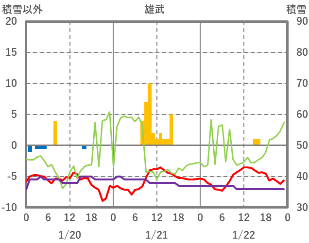| 日 | 時 | 気温 | 降水 | 風向/風速 | 日照 | 積雪 | 降雪 |