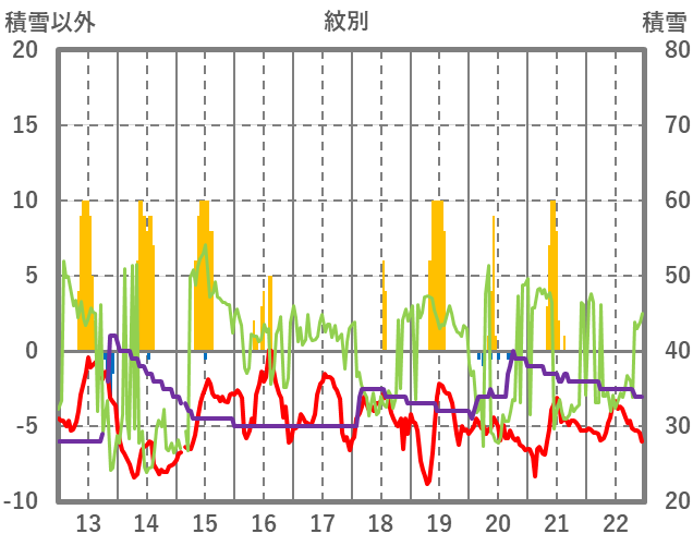 | 日 | 時 | 気温 | 降水 | 風向/風速 | 日照 | 積雪 | 降雪 |