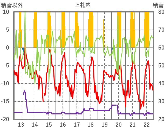 | 13 | -4.4 | 0 | NNW/3.5 | 30 | 24 | 0 | |