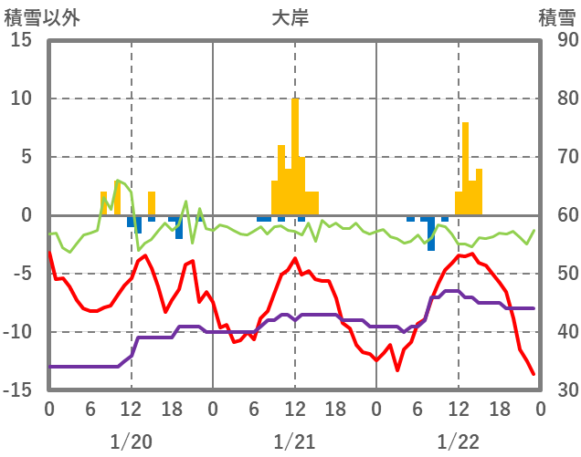| 日 | 時 | 気温 | 降水 | 風向/風速 | 日照 | 積雪 | 降雪 |