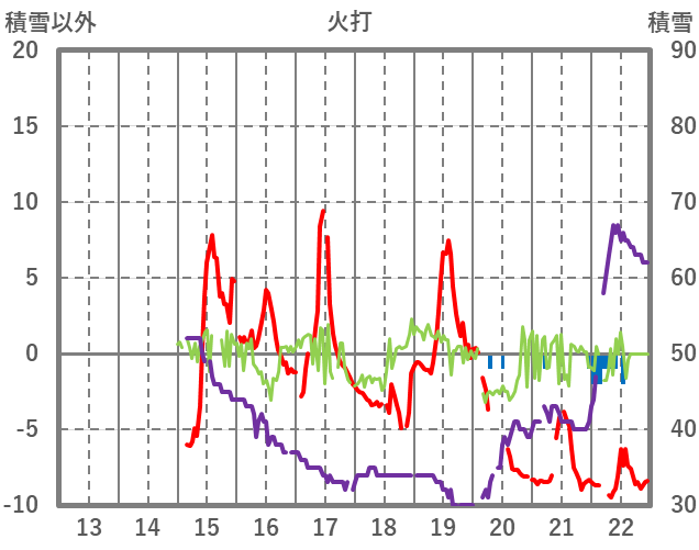 | 日 | 時 | 気温 | 降水 | 風向/風速 | 日照 | 積雪 | 降雪 |