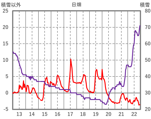 | 日 | 時 | 気温 | 降水 | 風向/風速 | 日照 | 積雪 | 降雪 |