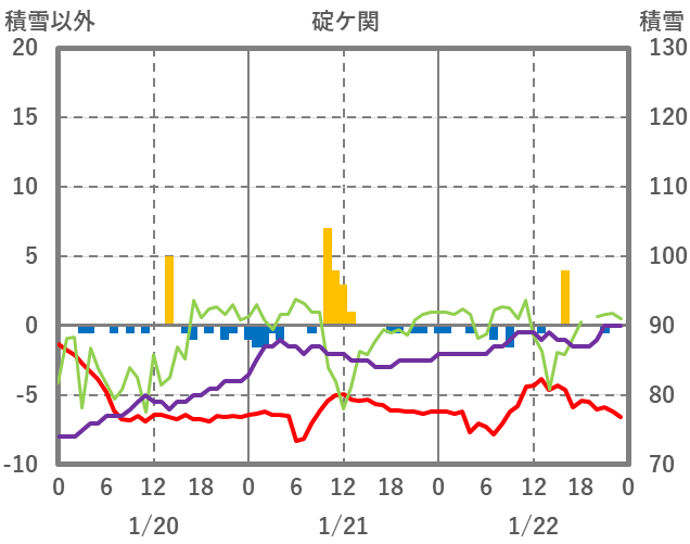 | 日 | 時 | 気温 | 降水 | 風向/風速 | 日照 | 積雪 | 降雪 |