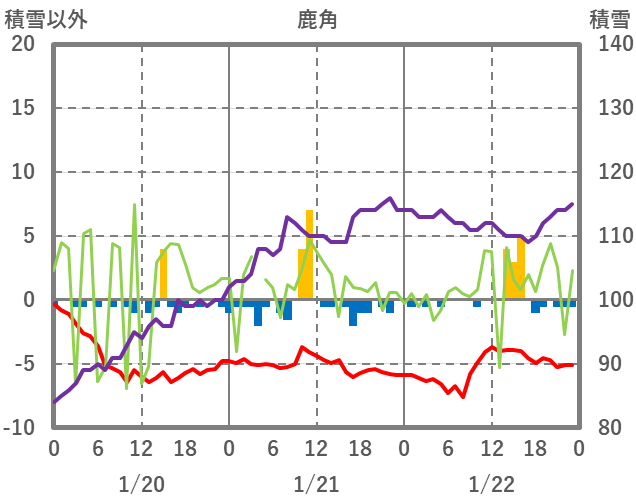 | 日 | 時 | 気温 | 降水 | 風向/風速 | 日照 | 積雪 | 降雪 |