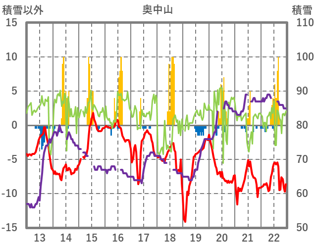 | 日 | 時 | 気温 | 降水 | 風向/風速 | 日照 | 積雪 | 降雪 |