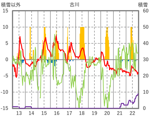 | 日 | 時 | 気温 | 降水 | 風向/風速 | 日照 | 積雪 | 降雪 |