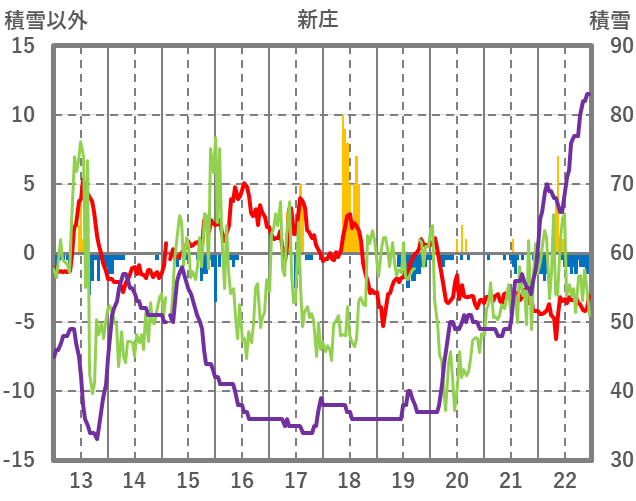 | 日 | 時 | 気温 | 降水 | 風向/風速 | 日照 | 積雪 | 降雪 |