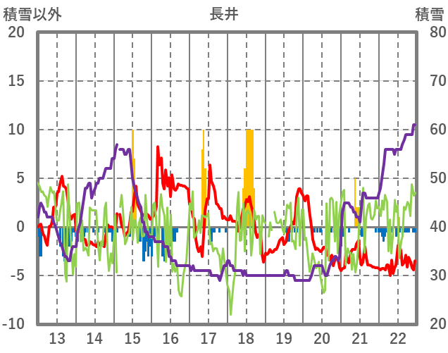 | 日 | 時 | 気温 | 降水 | 風向/風速 | 日照 | 積雪 | 降雪 |