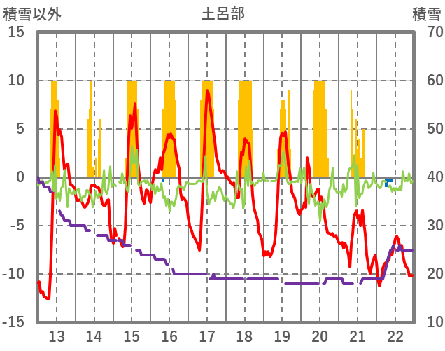 | 日 | 時 | 気温 | 降水 | 風向/風速 | 日照 | 積雪 | 降雪 |