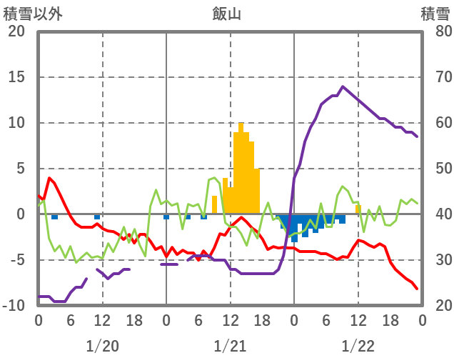 | 日 | 時 | 気温 | 降水 | 風向/風速 | 日照 | 積雪 | 降雪 |