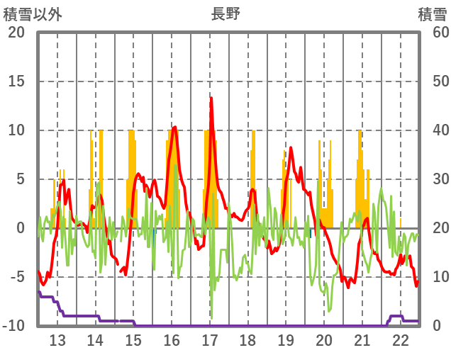 | 日 | 時 | 気温 | 降水 | 風向/風速 | 日照 | 積雪 | 降雪 |