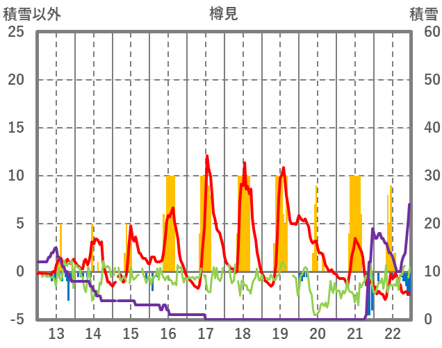 | 日 | 時 | 気温 | 降水 | 風向/風速 | 日照 | 積雪 | 降雪 |