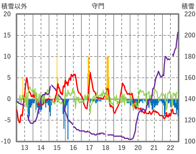 | 日 | 時 | 気温 | 降水 | 風向/風速 | 日照 | 積雪 | 降雪 |