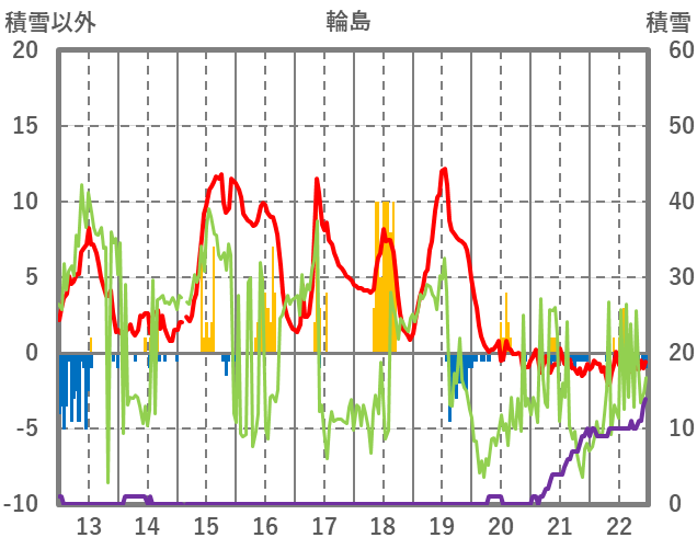 | 日 | 時 | 気温 | 降水 | 風向/風速 | 日照 | 積雪 | 降雪 |