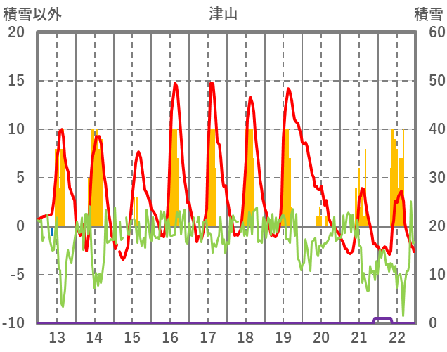 | 日 | 時 | 気温 | 降水 | 風向/風速 | 日照 | 積雪 | 降雪 |