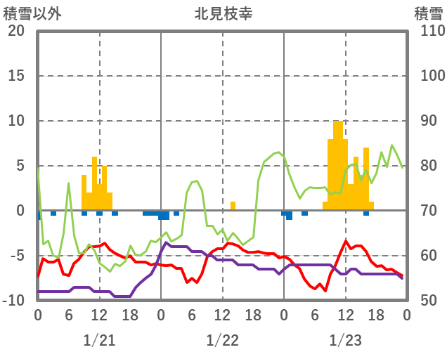 | 日 | 時 | 気温 | 降水 | 風向/風速 | 日照 | 積雪 | 降雪 |