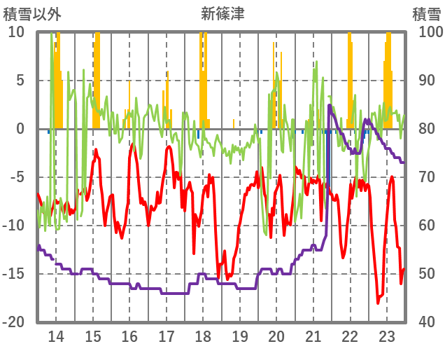 | 日 | 時 | 気温 | 降水 | 風向/風速 | 日照 | 積雪 | 降雪 |