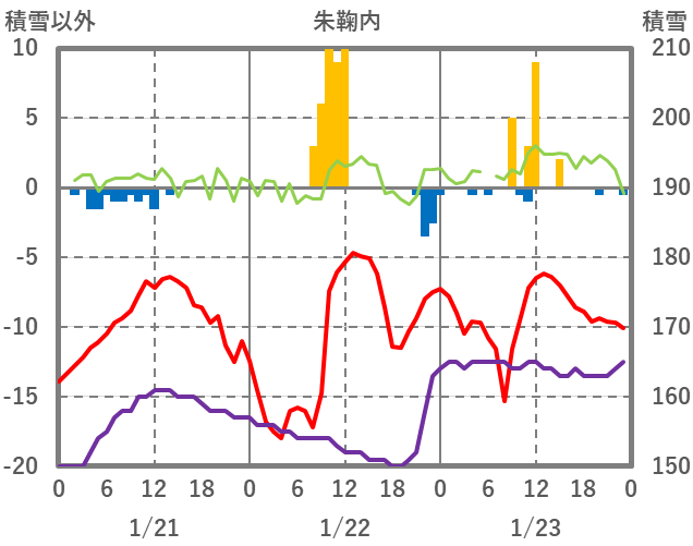 | 日 | 時 | 気温 | 降水 | 風向/風速 | 日照 | 積雪 | 降雪 |