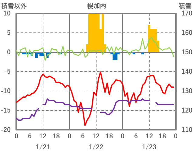 | 日 | 時 | 気温 | 降水 | 風向/風速 | 日照 | 積雪 | 降雪 |