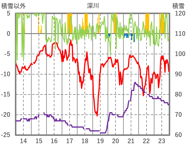 | 日 | 時 | 気温 | 降水 | 風向/風速 | 日照 | 積雪 | 降雪 |