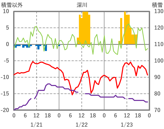 | 日 | 時 | 気温 | 降水 | 風向/風速 | 日照 | 積雪 | 降雪 |