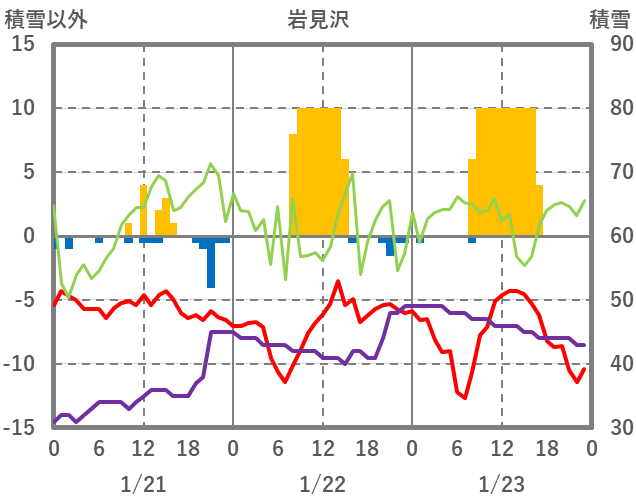 | 日 | 時 | 気温 | 降水 | 風向/風速 | 日照 | 積雪 | 降雪 |
