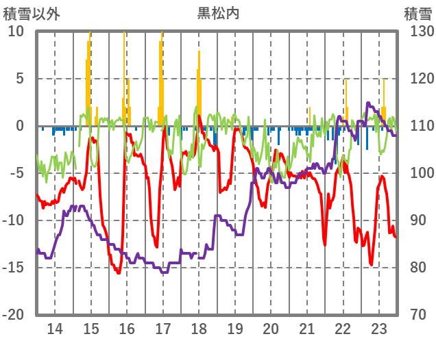 | 日 | 時 | 気温 | 降水 | 風向/風速 | 日照 | 積雪 | 降雪 |