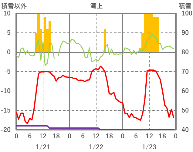 | 日 | 時 | 気温 | 降水 | 風向/風速 | 日照 | 積雪 | 降雪 |