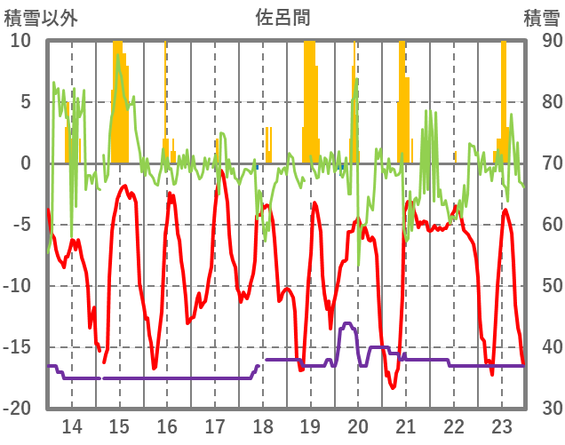 | 日 | 時 | 気温 | 降水 | 風向/風速 | 日照 | 積雪 | 降雪 |